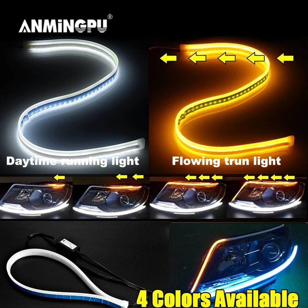 Дневные ходовые огни ANMINGPU, гибкая последовательная Светодиодная лента DRL с 2 яркими ДХО, указатель поворота желтого цвета для светильник Рей