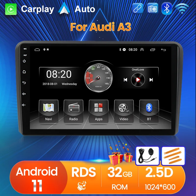 Автомагнитола 2 + 32 ГБ, 2DIN, GPS, Android, для Audi A3 8P 2003-2012 S3 2006-2012, навигация, мультимедиа, SWC, Wi-Fi