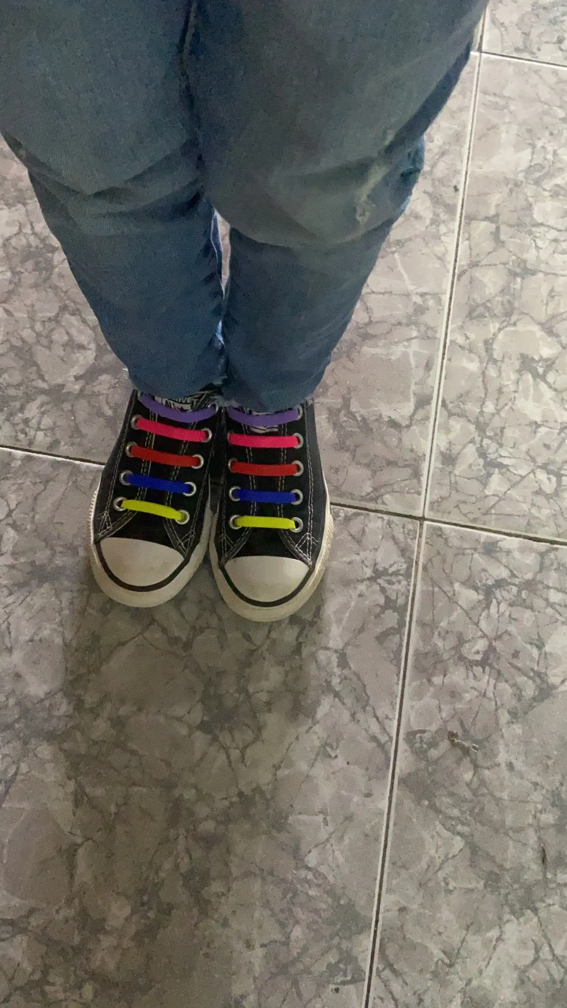 Шнурки разного размера, но все они поставляются в одной упаковке, вы должны смотреть, когда вы начинаете класть их в тапочки, чтобы начать с нижней части вверх
