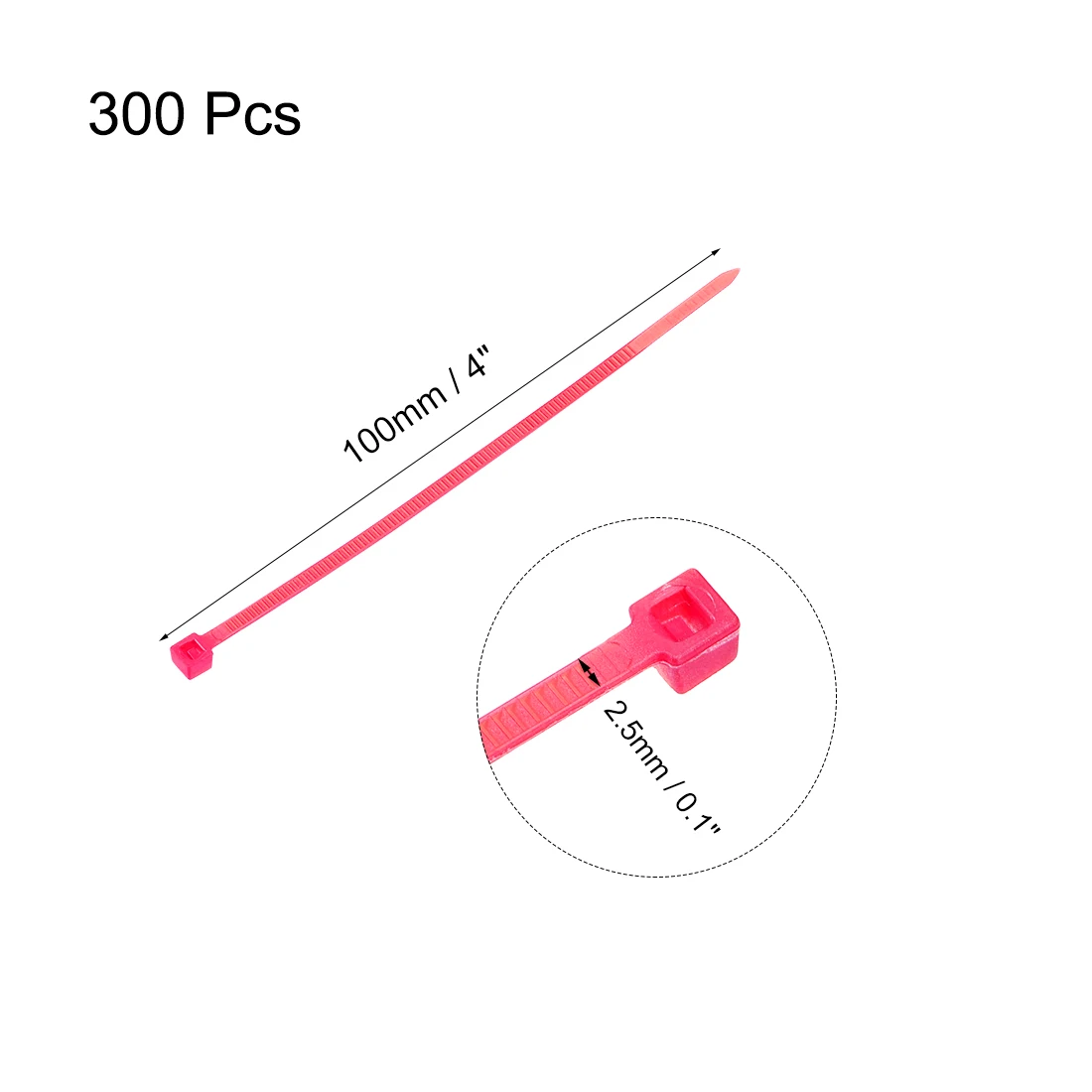 Uxcell 300 шт., нейлоновые галстуки на молнии 100 мм x 2,5 мм, самоблокирующиеся, розовые, одноразовые, фиксирующая гибкая кабельная стяжка