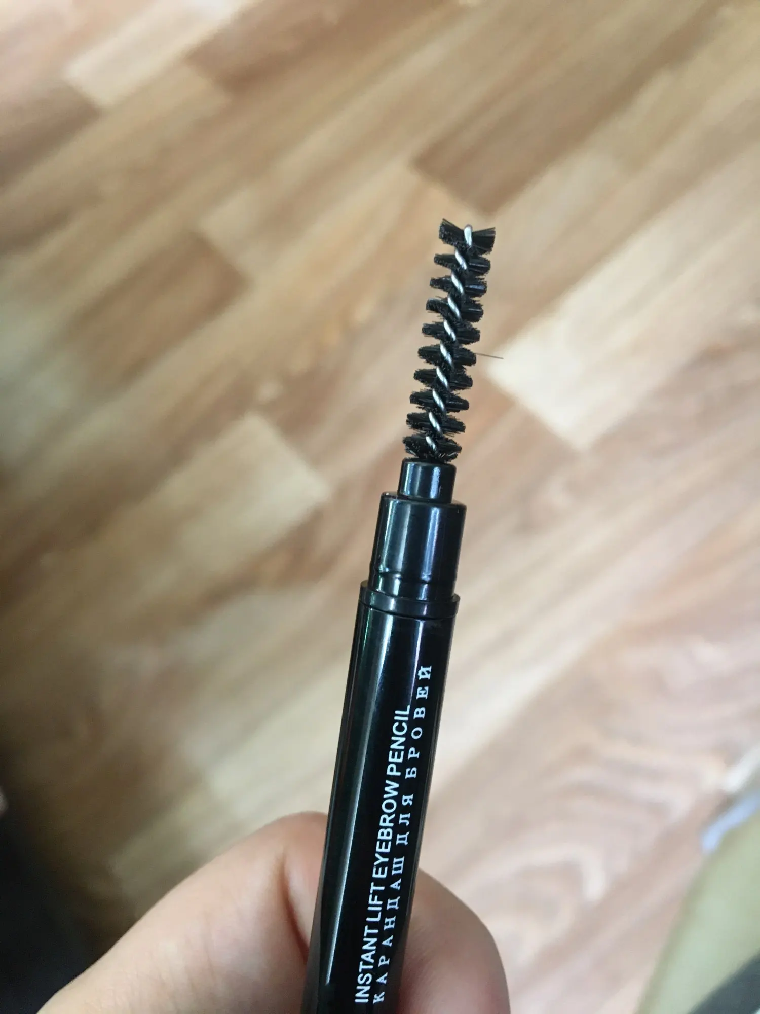 заказ шёл полтора месяца. заказы не в первый раз. карандаш твердый, красит бледненько, поэтому брови выглядят более натурально. не стойкий.