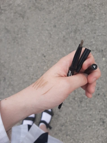 Карандаш хороший, мне нравится. Можно изменять и регулировать размер самого карандаша. Я немного с цветом промахнулась, нужно было взять темнее. Ну а так очень хорош в использовании. Качество супер. Доставка была немного долгой, но ничего. Спасибо продавцу