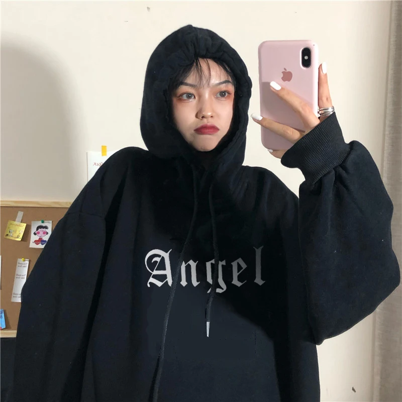 Женская толстовка с длинным рукавом, винтажный спортивный костюм большого размера в стиле Харадзюку, с принтом ангела и надписью