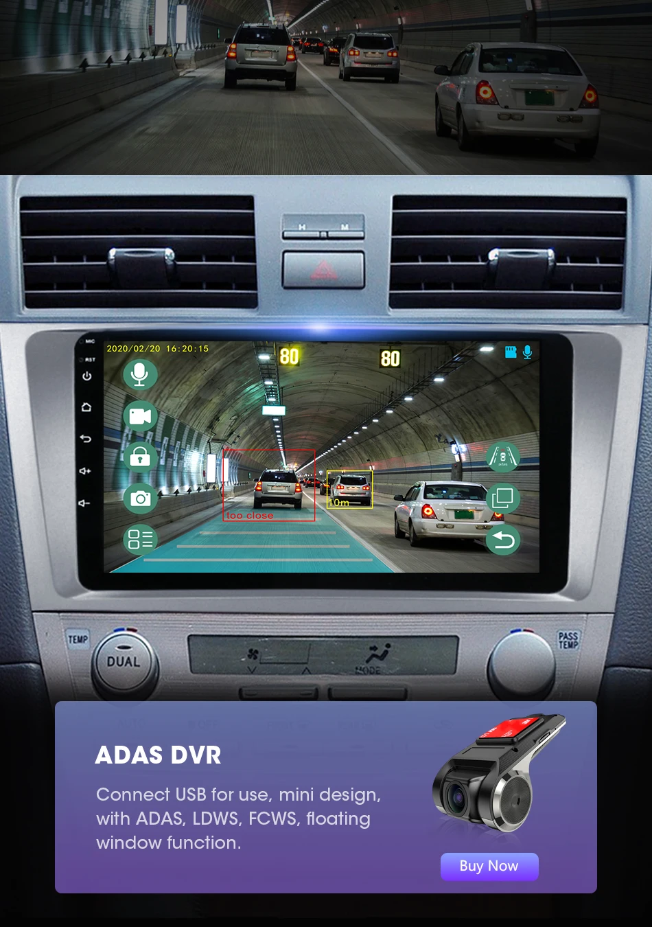 Поддерживает подключение к видеорегистраторУ ADAS. ADAS DVR имеет несколько встроенных ассистивных технологий вождения, вставляя высококачественную карту памяти TF для записи каждого момента вашего вождения.