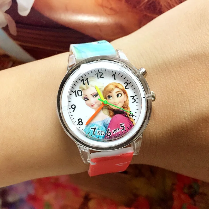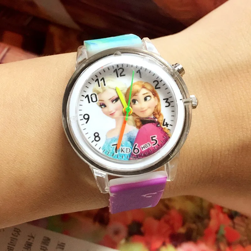 Мультяшный милый цветной светильник, Силиконовые кварцевые часы, дети, девочки, модный браслет, светящиеся наручные часы