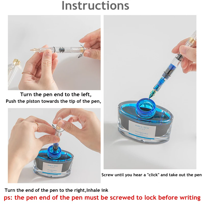 Точная защита от протекания конструкция вращения: использование поршня, в то время как чернила находятся в ручке, приведет к утечке чернил из ручки. Вы можете использовать конец ручки барреля по часовой стрелке, чтобы зафиксировать его, пока не услышите «щелчок».
