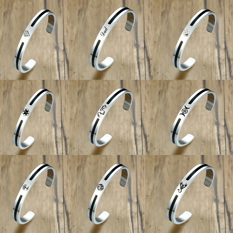 Браслет-манжета мужской из нержавеющей стали с эмалью, браслеты со звездами Давида, дракона скорпиона, 8 мм