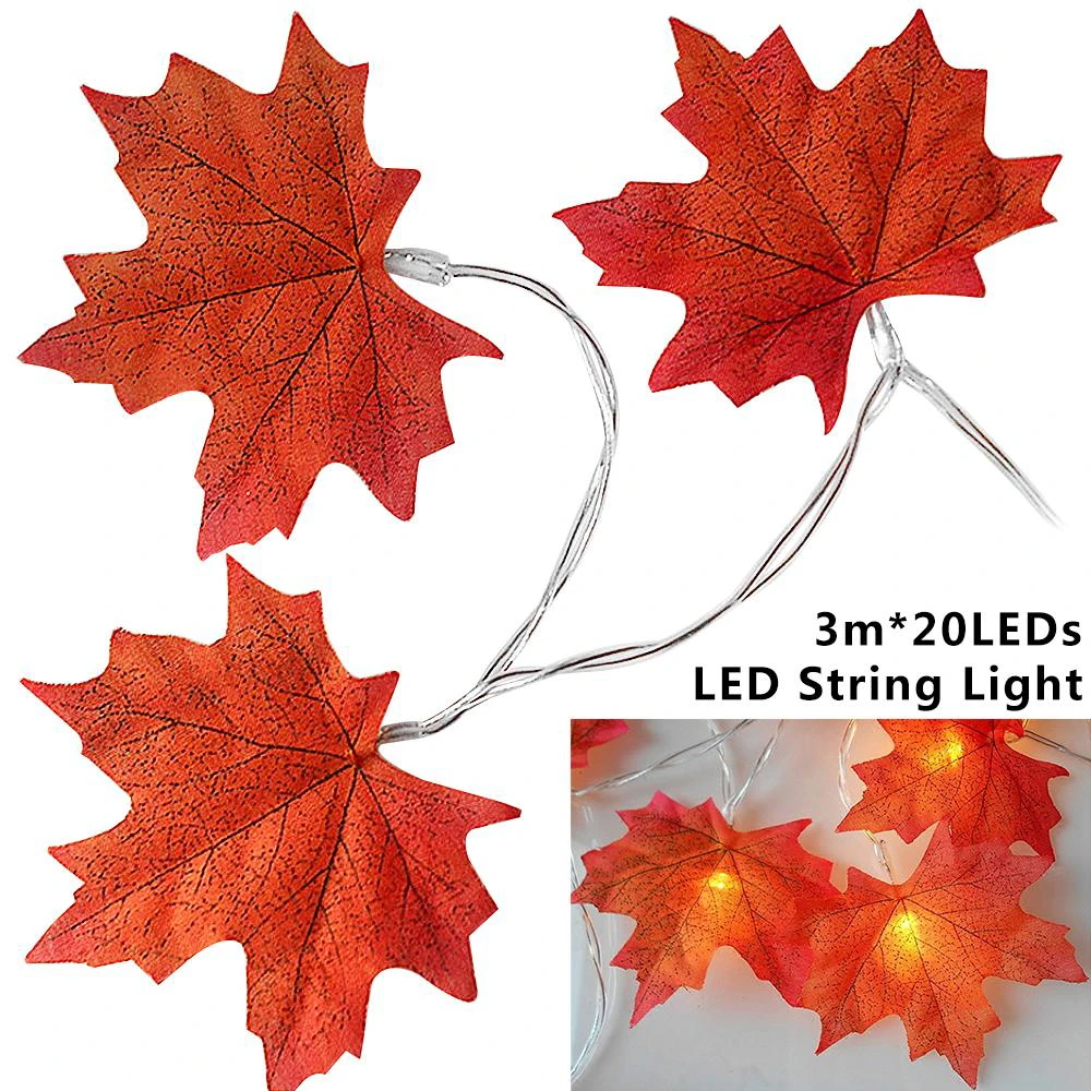 Новинка осеннее украшение 20 светодиодов искусственные осенние листья кленовые листья Осенняя гирлянда осенний декор Хэллоуин Рождество 3 метра