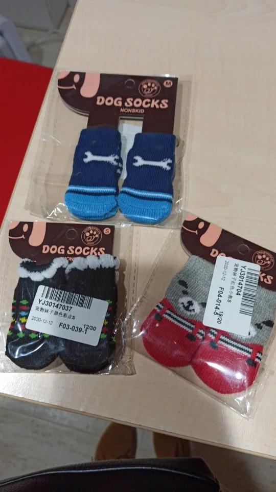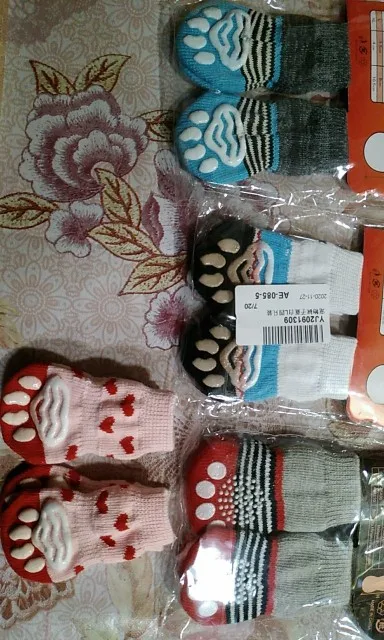 Носки нескользящие, мягкие, Нескользящие, с мультяшным принтом, Размеры SML, 4 шт., теплая для щенков собак