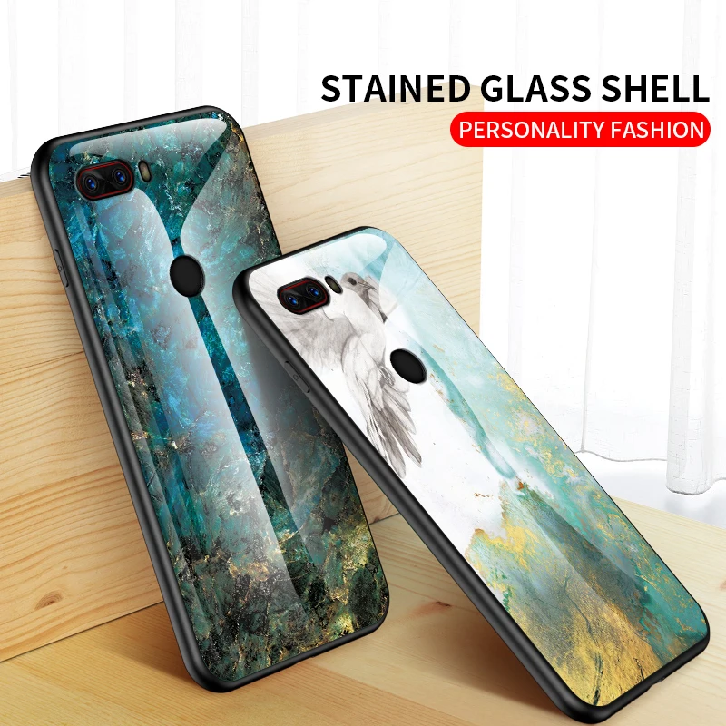 Роскошный чехол для OPPO Reno A с твердым мраморным стеклом и мягко...