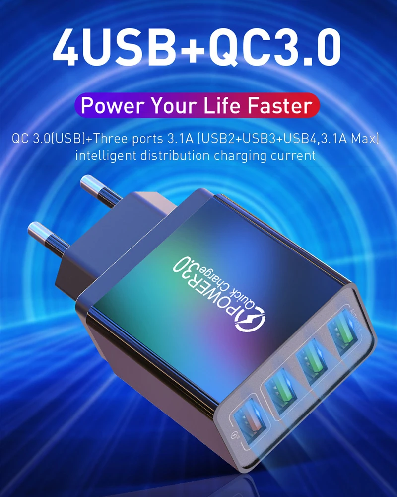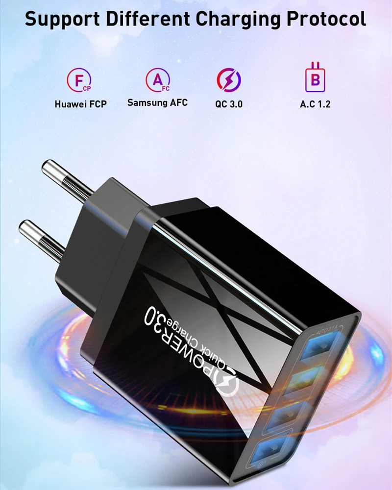 OLAF Быстрая зарядка QC 3,0 Смарт быстрая 4 USB настенное зарядное ...