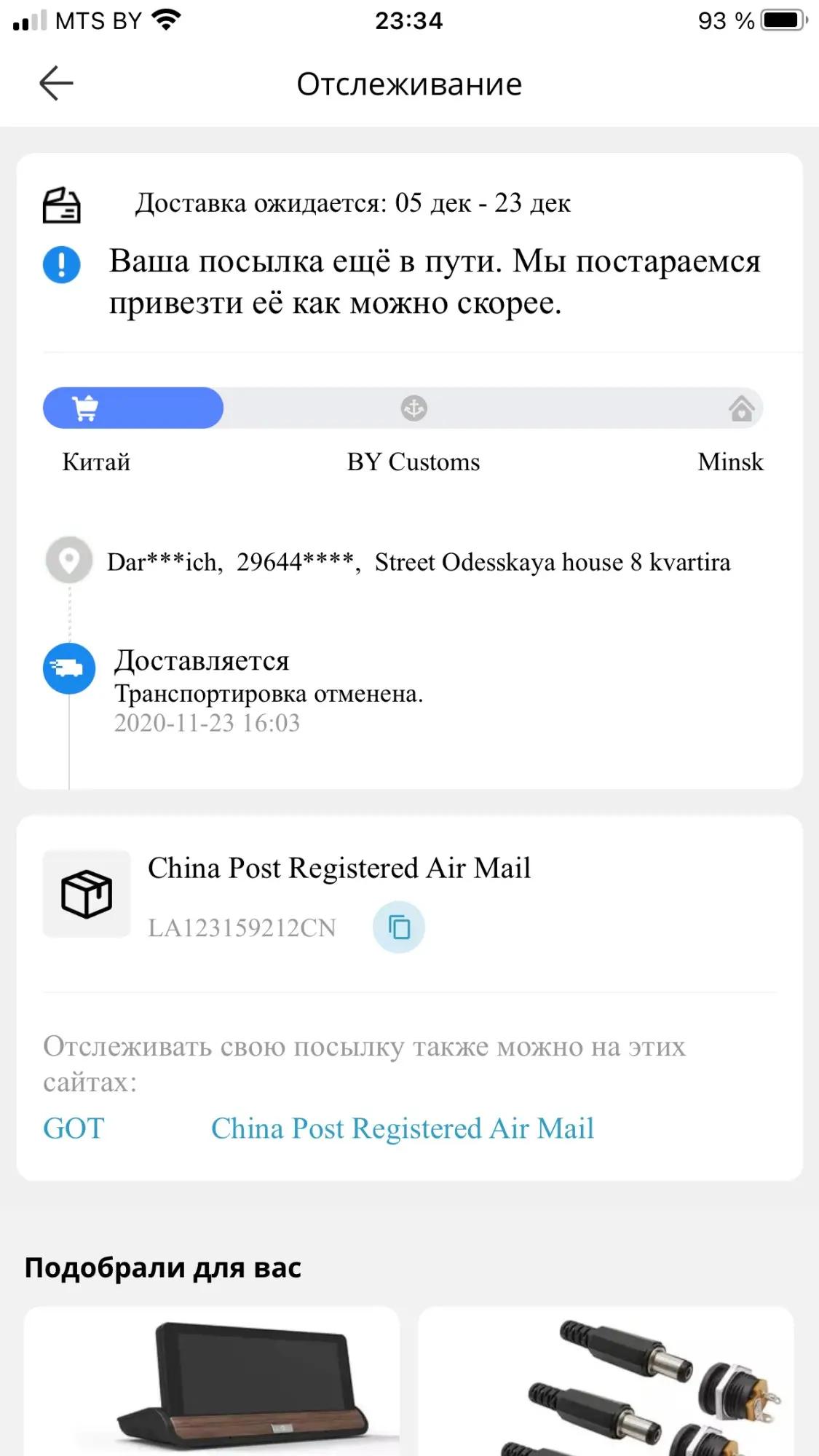 Осторожно Мошенник! Продавец таким образом зарабатывает. Товар не пришел. Я выиграл спор апелляцию, через три месяца, первый спор проиграл, предоставил кучу доказательств, скриншотов и вернул деньги, потратил много времени на все это. Продавец разработал схему обмана, указывал другой трекномер, менял номер, то товар пришел то в пути, то с другой страны отправлен. Али не может разобраться в этих тонкостях не вникая. Товар вообще не отправилял с Китая.