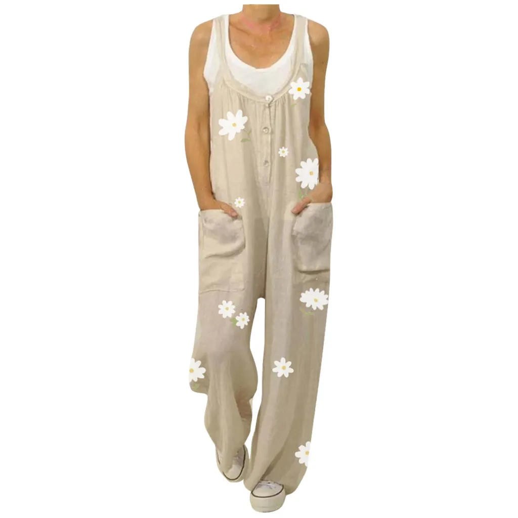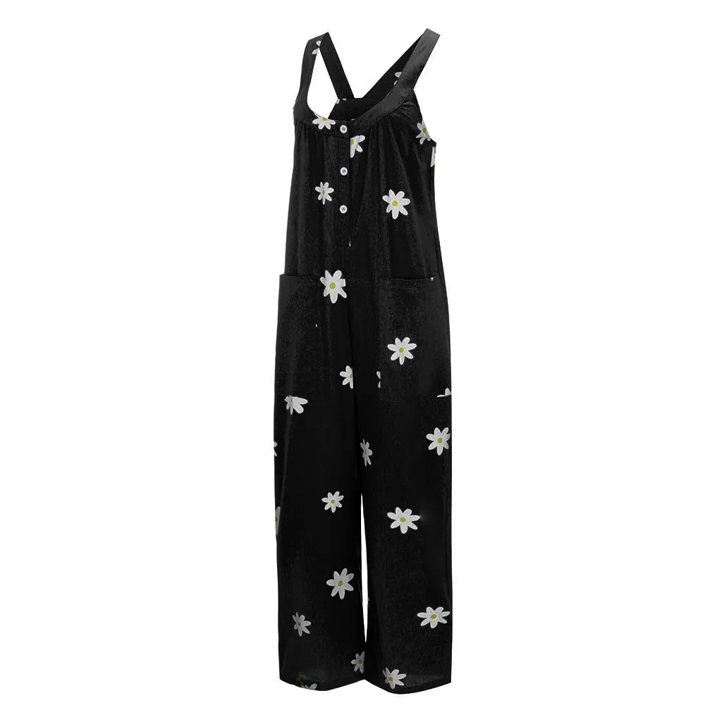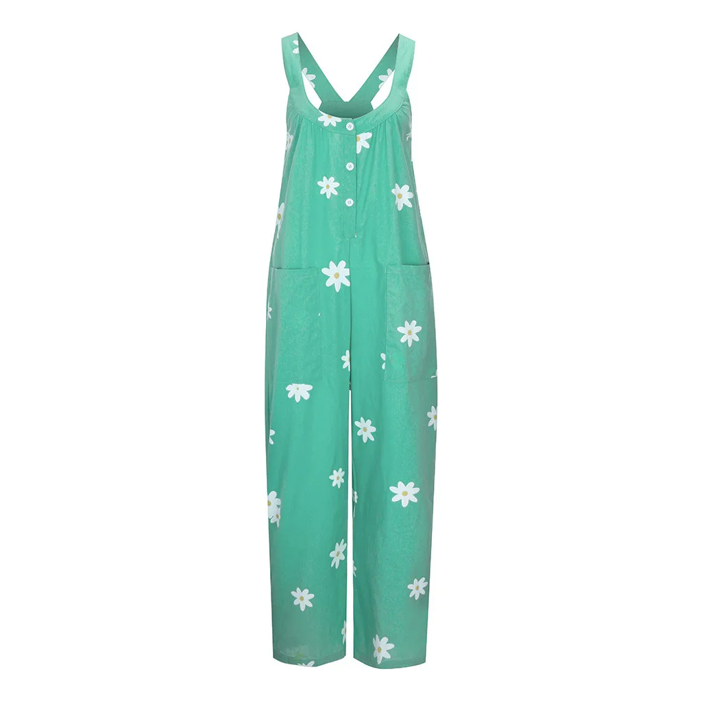 Женский хлопковый комбинезон с цветочным принтом, элегантный Свободный комбинезон на пуговицах с открытой спиной и карманами, модель #616 на лето 2020