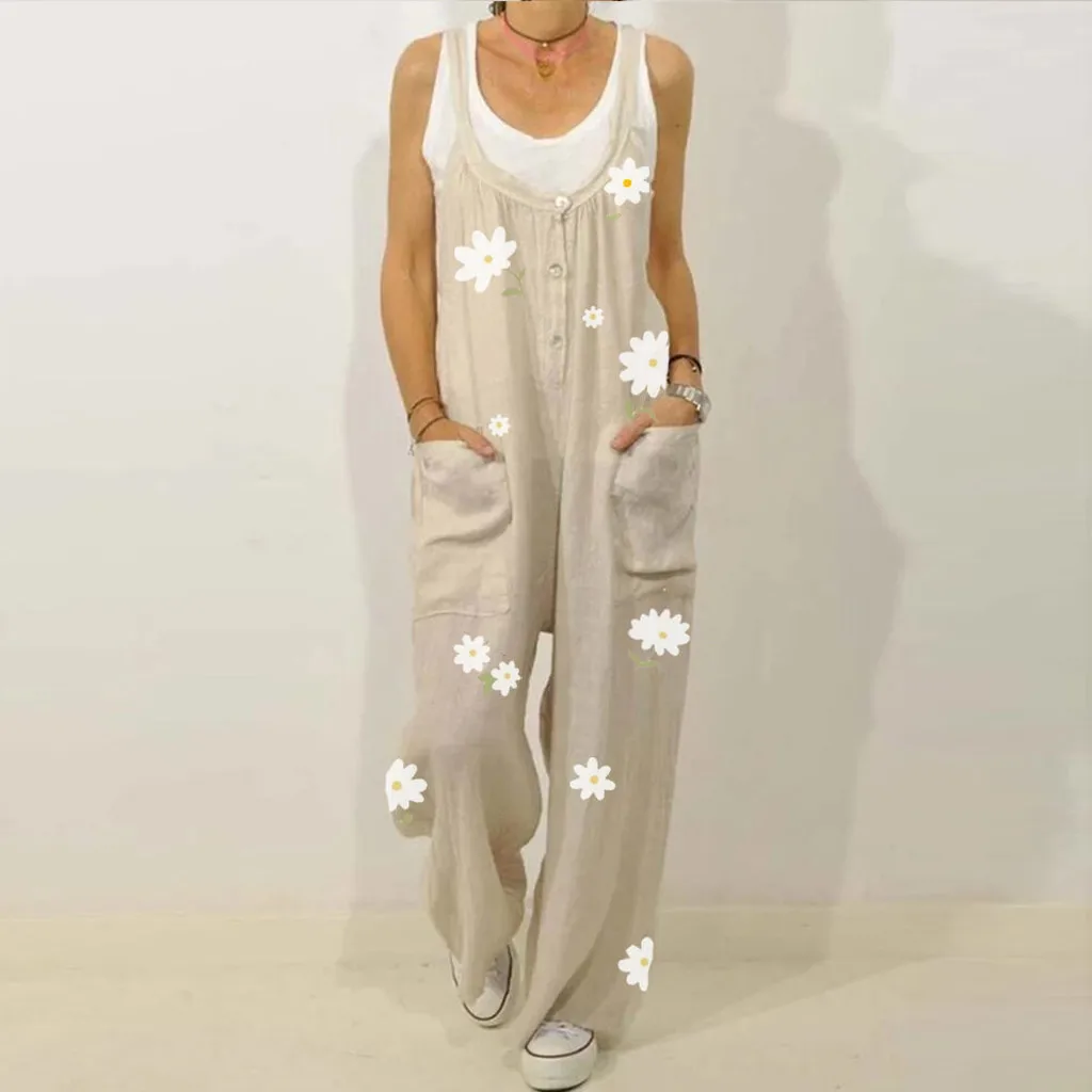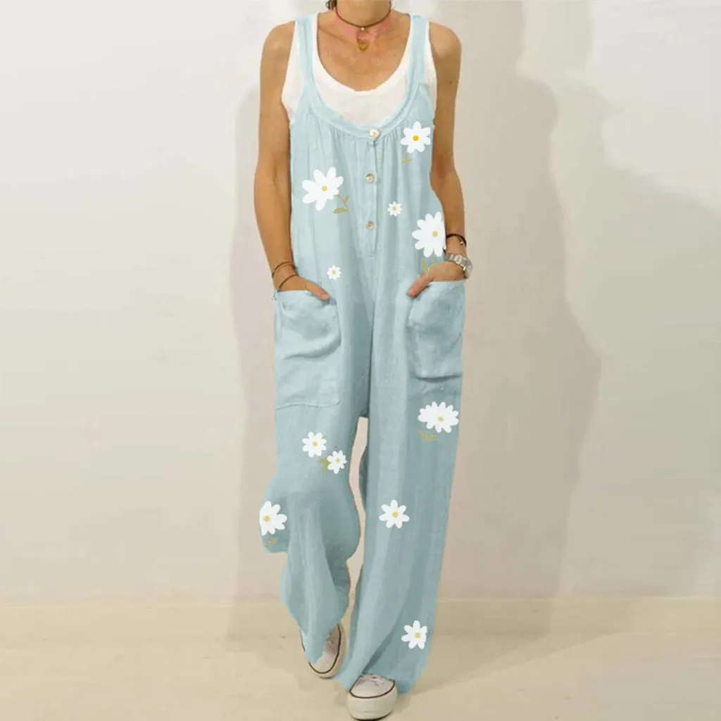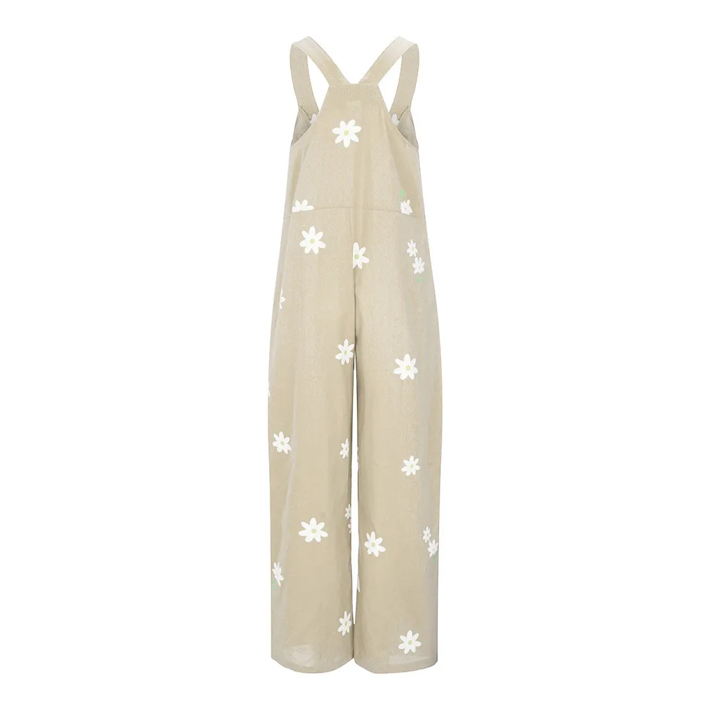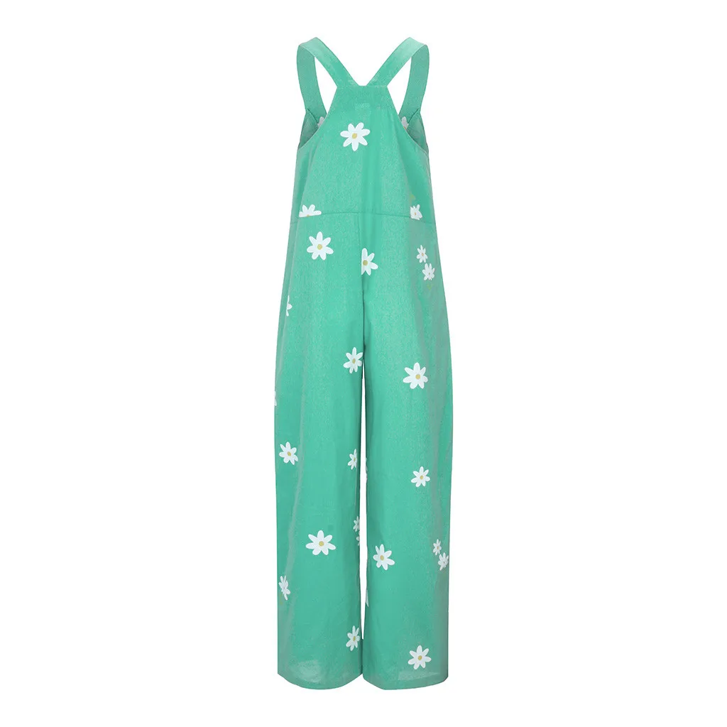 Женский хлопковый комбинезон с цветочным принтом, элегантный Свободный комбинезон на пуговицах с открытой спиной и карманами, модель #616 на лето 2020