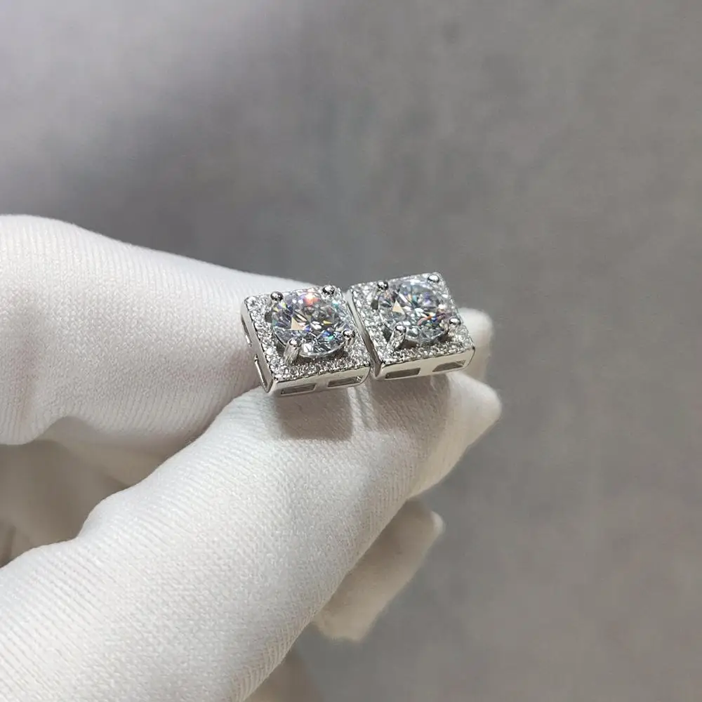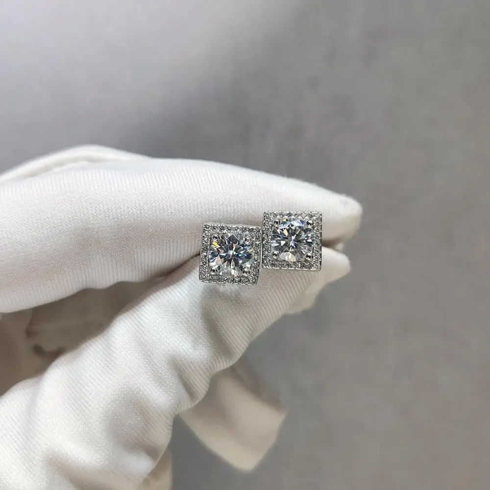 Классические серьги inbeaut Suqare с муассанитом из серебра 925 пробы, превосходная огранка 0,5 ct D, цветные, с бриллиантами, серьги-гвоздики с муассанитом пробы