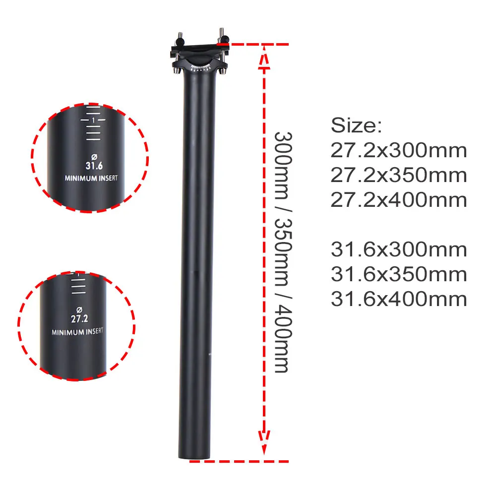 Велосипедный штырь из углеродного волокна, подседельный штырь для горного велосипеда, 27,231,6*300350400 мм, детали для велосипеда, титановые винты 125 г