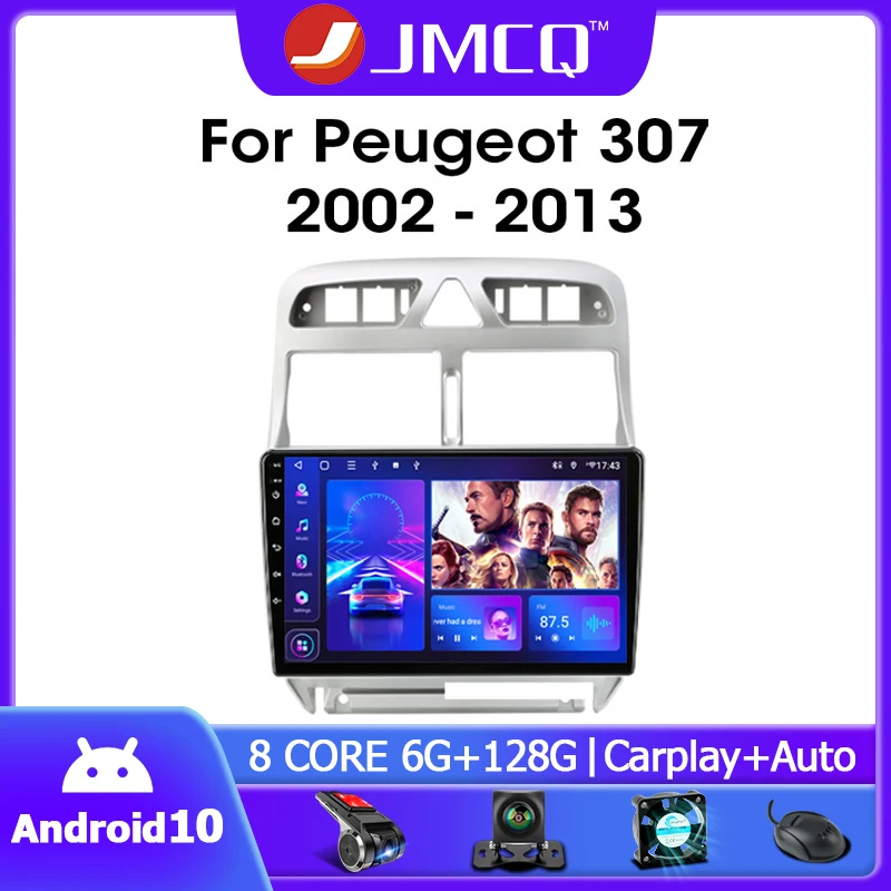 Автомобильная магнитола JMCQ, 9 дюймов, Android 10, для Peugeot 307 2002-2013, мультимедийный видеоплеер, 2din DSP 4G + WIFI GPS-навигация, стерео головное устройство