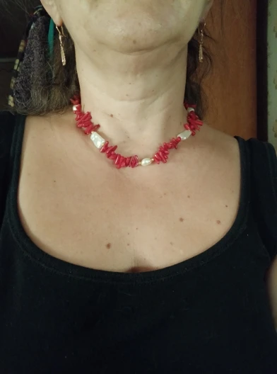 Массивное женское ожерелье в стиле панк с красными коралловыми буси...