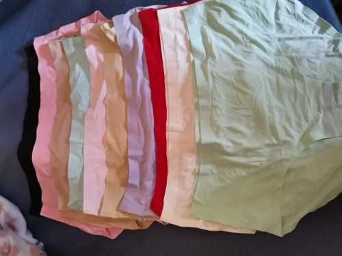 Я люблю бесшовные трусы, но проблема что их приходится растягивать (и не один день возможно, но плюс что они растянувшись не сядут). Какой размер не брала - изначально малы в районе резинок. Цвет после стирки может меняться( белые трусы стали зелёными, а розовые белыми). Но в целом купив эти 10 шт - у меня нету желания носить что то другое вообще.