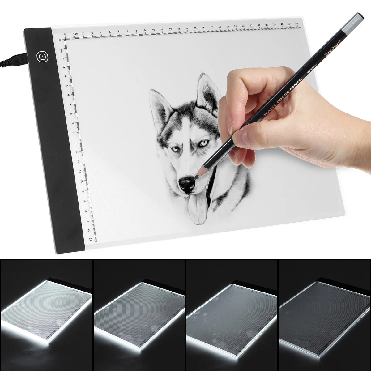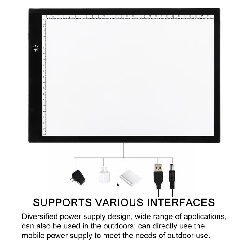 Особенности:1.Обновленная версия: Лампа планшета имеет плавную функцию затемнения! Просто нажмите и удерживайте кнопку на выключателе, вы можете настроить яркость по вашему желанию. Когда вы снова включите лампу, она покажет яркость вашего последнего использования.2. PУдобный и взвешенный светильник: Светильник, который легко носить с собой и без проблем с хранением.3.Защита глаз во время отслеживания: Возьмите яркий экологически чистый светодиодный светильник без мерцания, равномерный и стабильный светильник позволит вам чувствовать себя комфортно во время процесса отслеживания. Лампа-направляющая пластина фильтрует вредные лучи и защищает ваши глаза, нет острых ламп, никаких проблем в течение длительного времени.4.Питание от USB: Поставляется с usb-кабелем, отслеживающая лампа может быть легко включена, подключив ее к источнику питания, компьютеру или любому usb-порту на розетке.5.Широкое использование: Лампа-коврик-идеальный инструмент для набросков, рисования, 2D анимации, каллиграфии, тиснения, скрапбукинга, переноса татуировок, шитья, будь то для профессионалов или любителей. Это также сказочный подарок для художников, дизайнеров и фотографов.