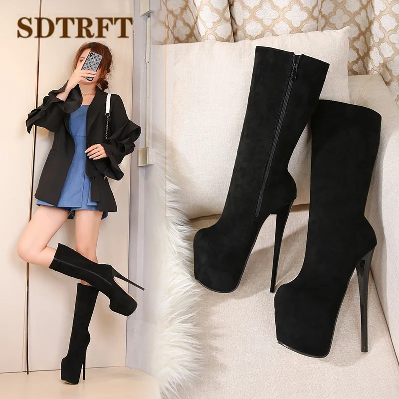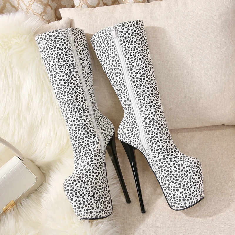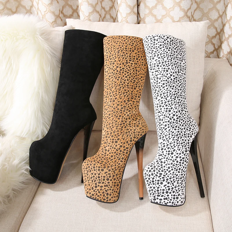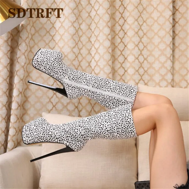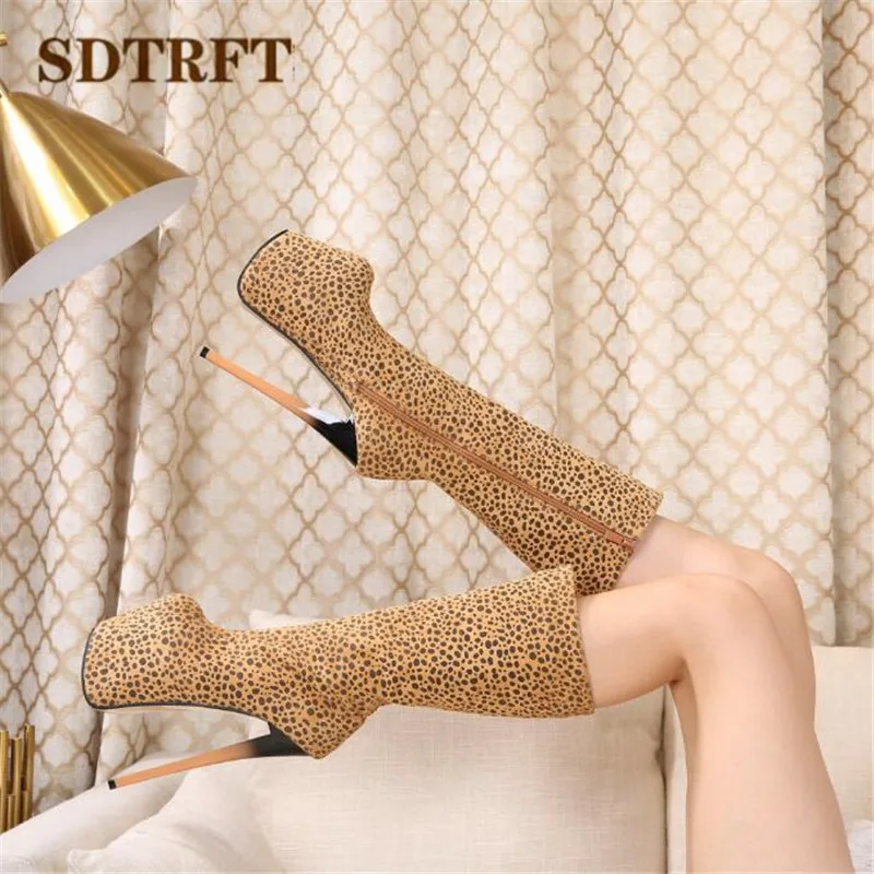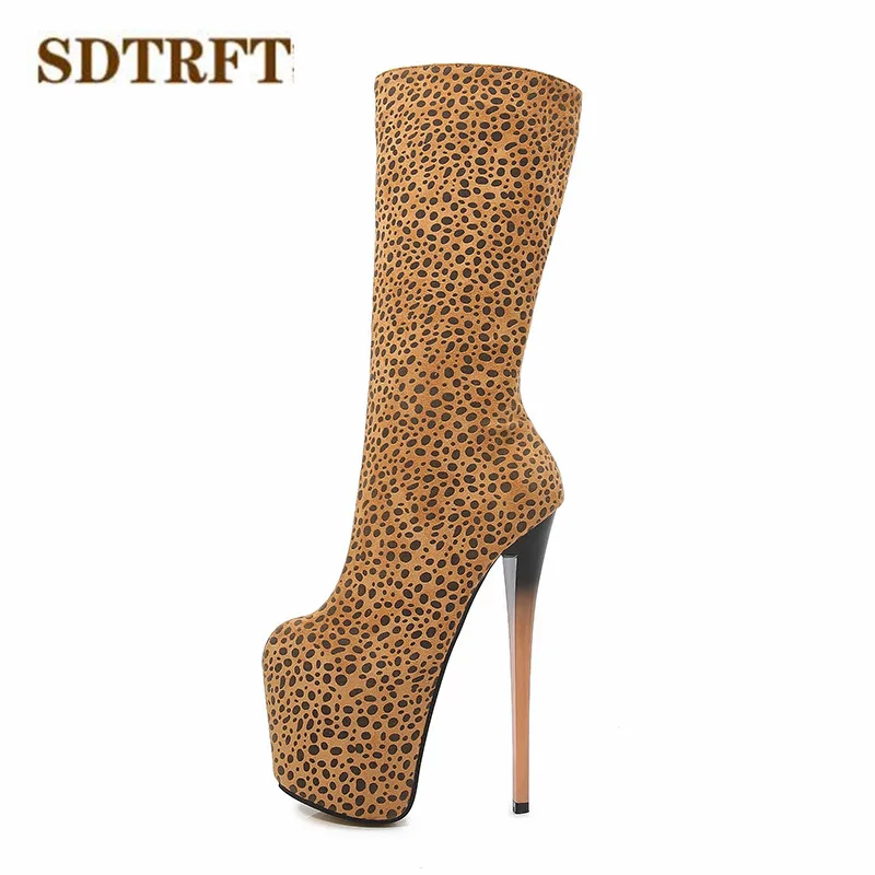 SDTRFTобувь с леопардовым принтом женские сапоги до колена на тонком каблуке 19 см женские сапоги на платформе с круглым носком US14 15 16 17 18 19