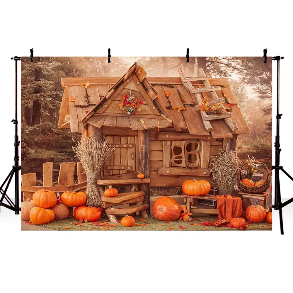 Виниловый фон для фотосъемки Mehofond с изображением кабины в лесу осеннего урожая тыквы зерна фотостудия детский портрет реквизит