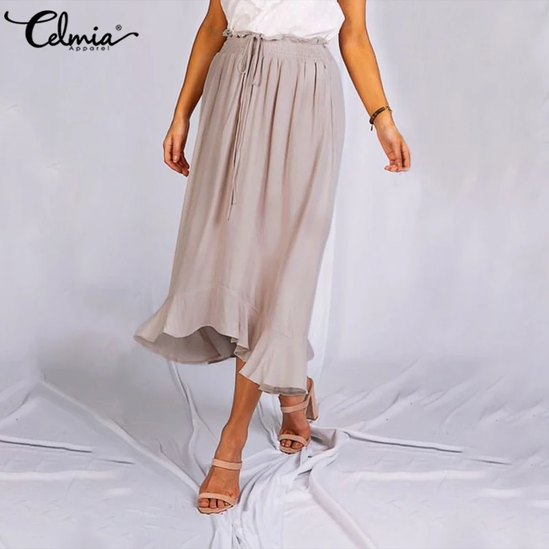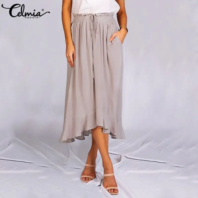 Юбка Celmia Женская ассиметричная с оборками, модная Свободная Повседневная элегантная офисная вечерняя длинная юбка с эластичным поясом, на лето