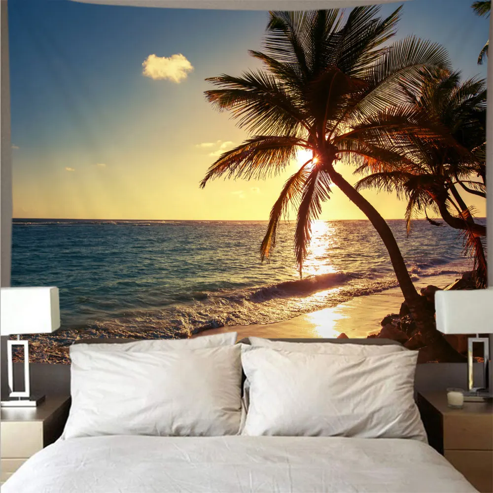 Красивый морской пляж голубое небо гобелен с пейзажем полиэстер настенная ткань художественный гобелен хиппи настенный пляжное полотенце