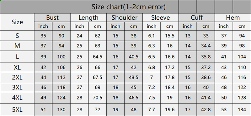 1. Измерьте фактическую длину рубашки, бюст, плечо и рукав, сравните с нашей таблицей размеров.2, это Азиатский Размер, и это только для справки, может иметь 1-3 см различия из-за ручного измерения.3. Внимание: из-за разницы между различными мониторами изображение может не отражать фактический цвет изделия.