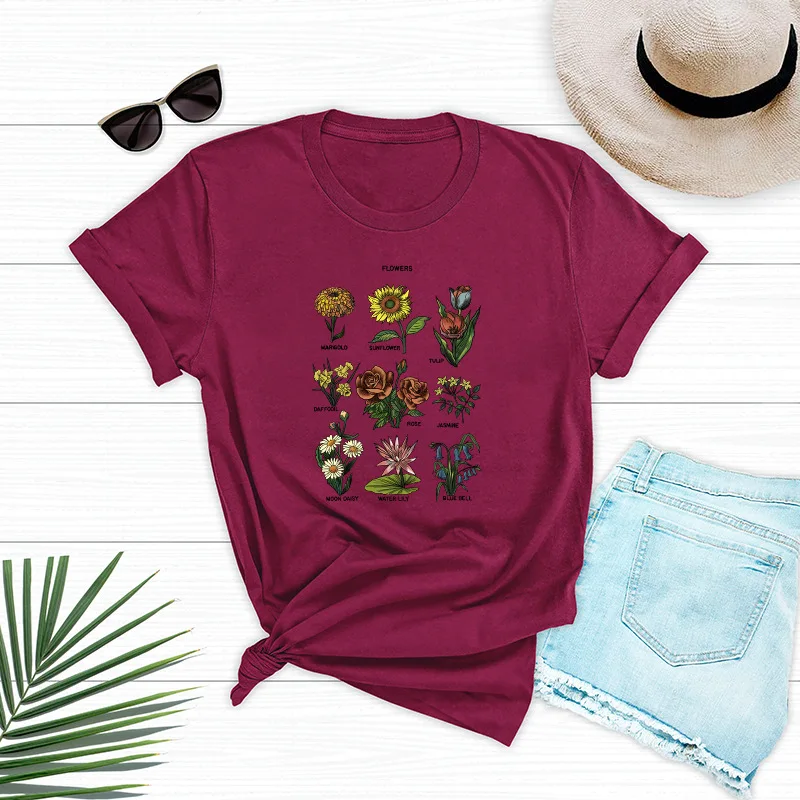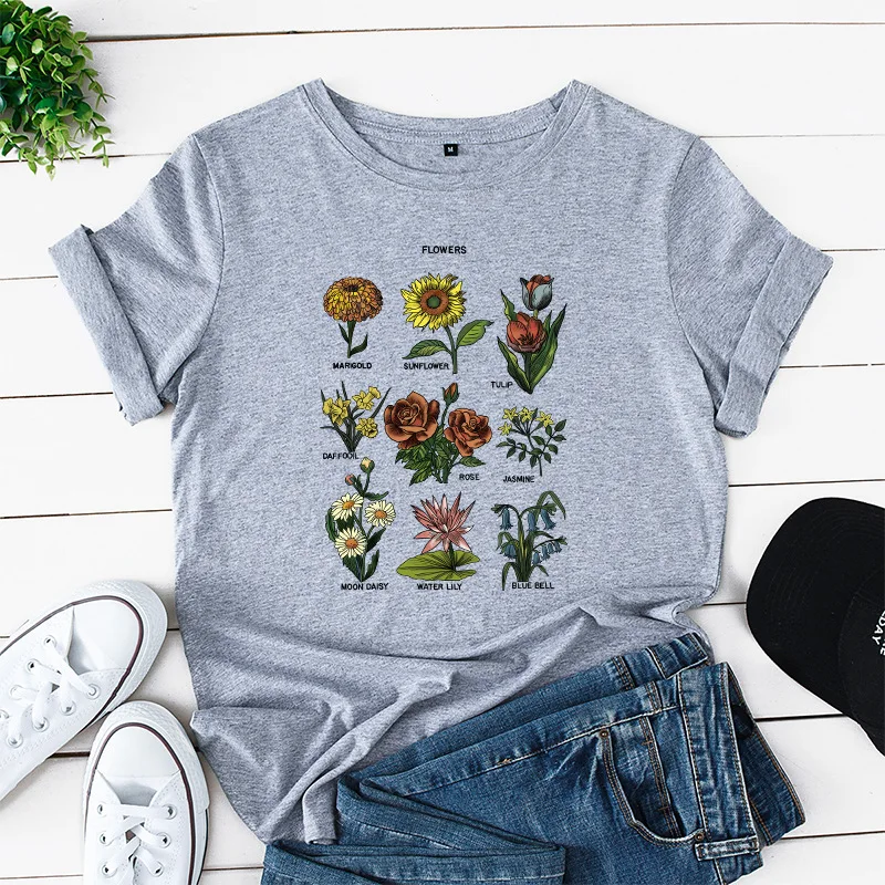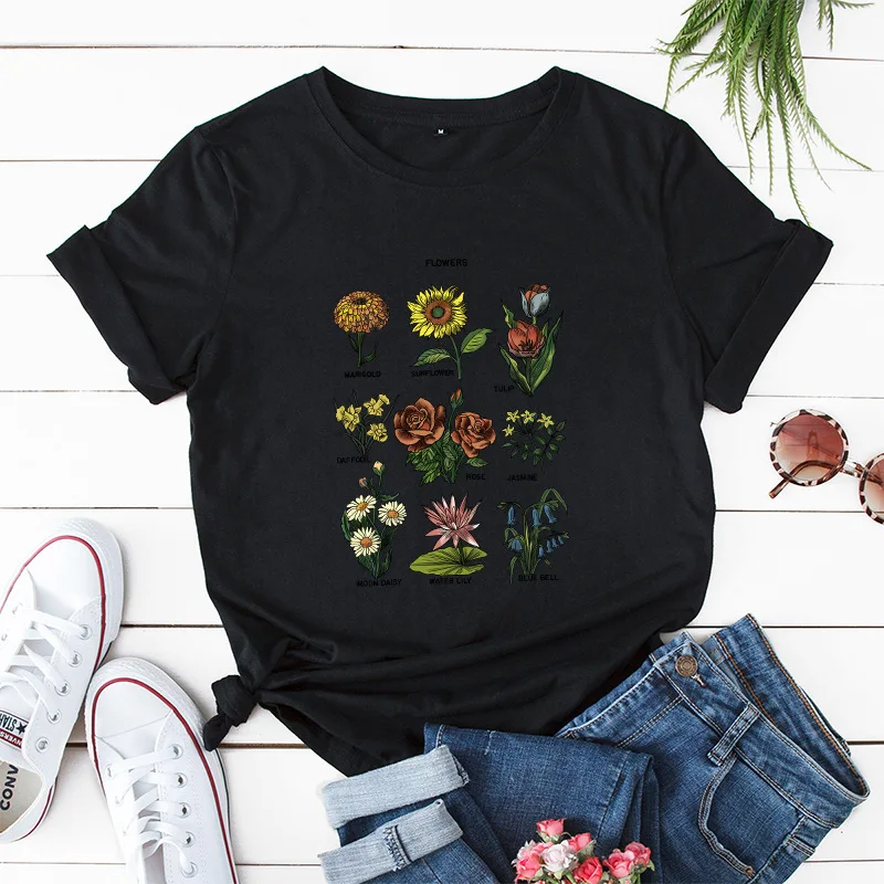 Летняя Хлопковая женская футболка JCGO, женская футболка с цветочным принтом и коротким рукавом, женская футболка с круглым вырезом