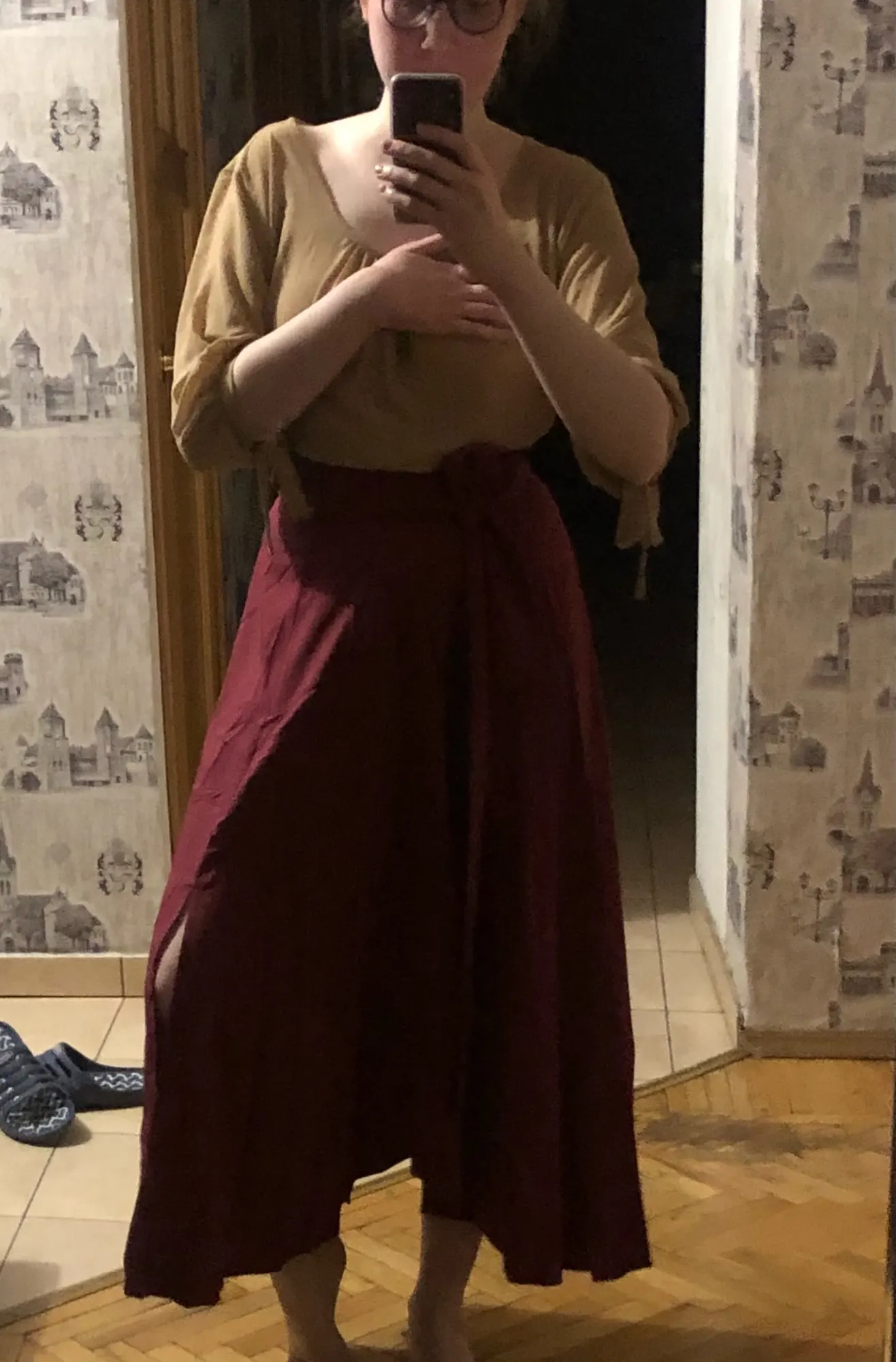 Хорошая юбка, красивый винный цвет, приятная ткань, хоть и синтетика. Немного ошиблась с размером, брала по талии, а оказалось и длина немного больше чем нужно, прям в пол, даже немного по земле. Мои параметры - рост 164, талия 90, брала XXXL. Можно было на размер меньше. С высоким каблуком может хорошо, но я не ношу высокий каблук. Продавца советую, все отлично!