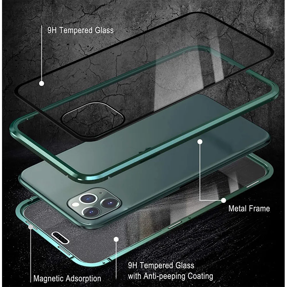 Анти-шпионское закаленное стекло 360 Полное покрытие Магнитный чехол для телефона для Apple iPhone 11 Pro Max XS X XR 7 8 6 6S Plus SE 2020 аксессуары
