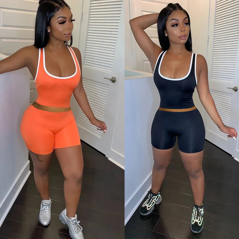 Спортивный костюм женский, однотонный, короткий, розовый, с коротким топом и шортами