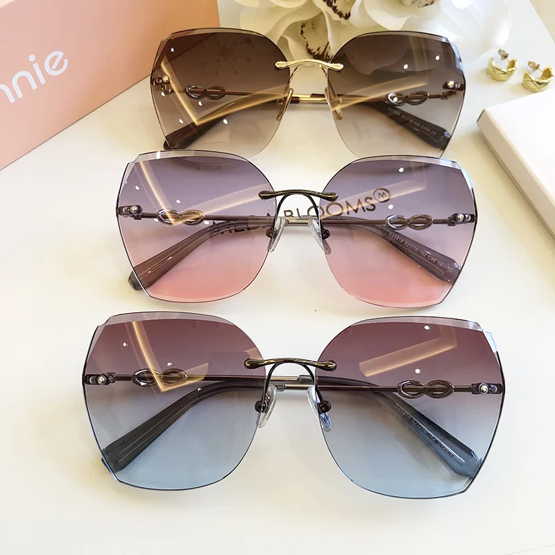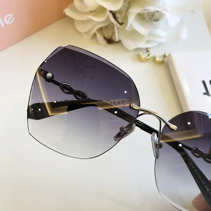 Солнцезащитные очки без оправы Uv400 женские, большие, с градиентом...