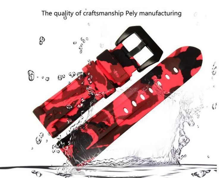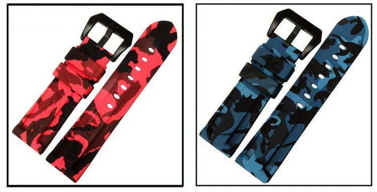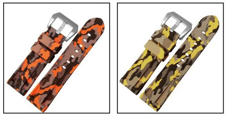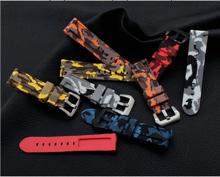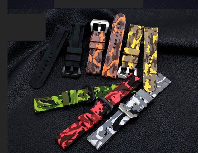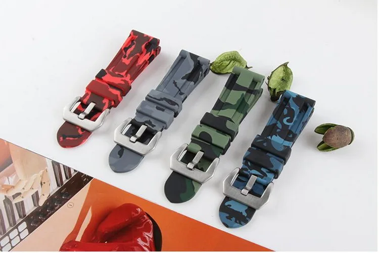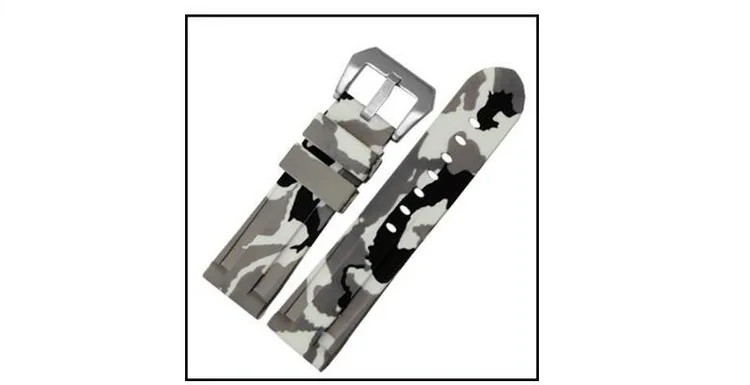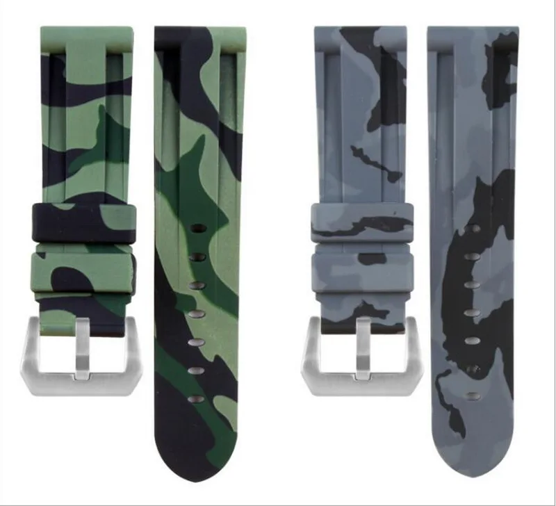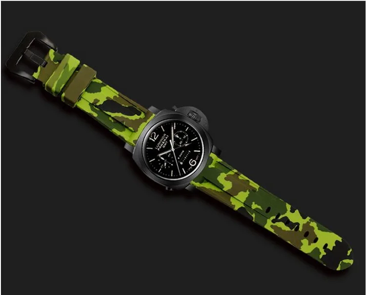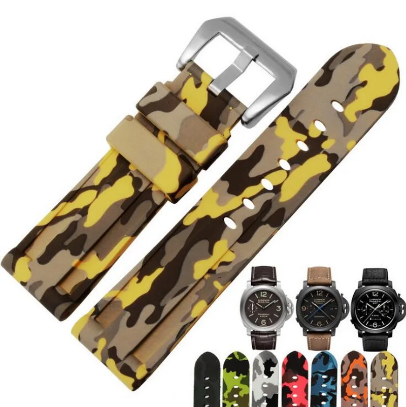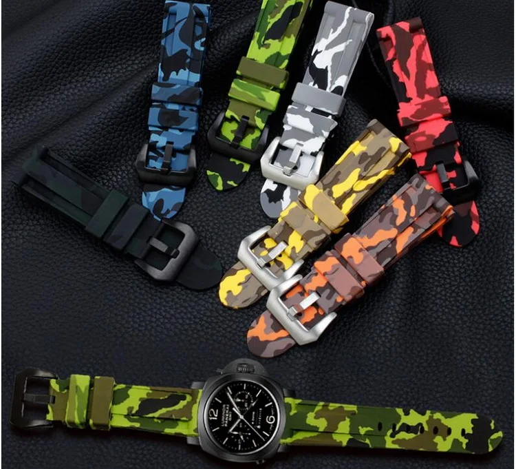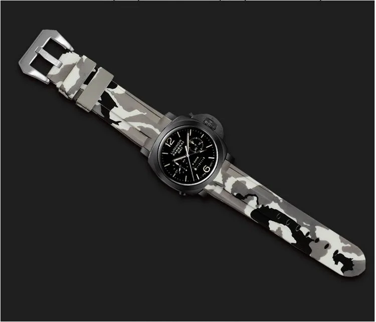 Ремешок силиконовый для Panerai мужской, спортивный Камуфляжный резиновый браслет с серебристой пряжкой, 20 мм 22 мм 24 мм