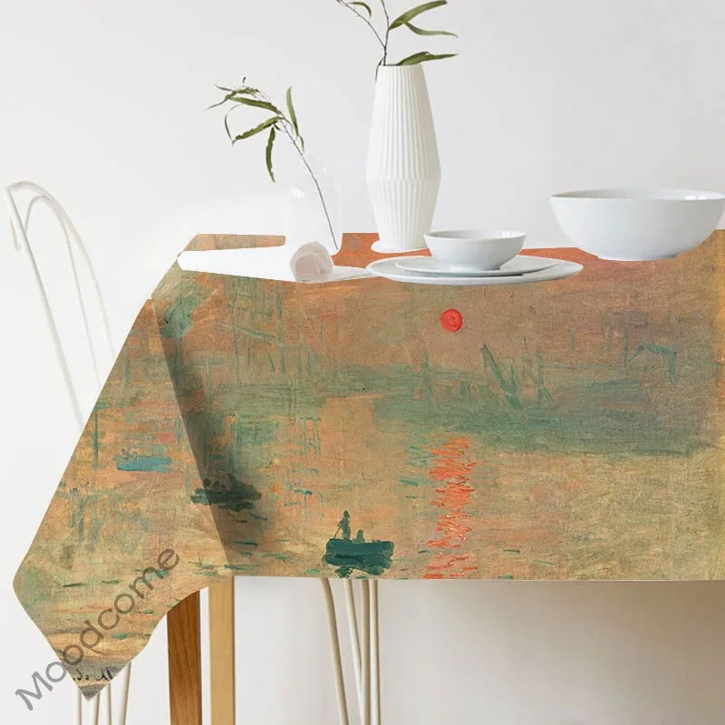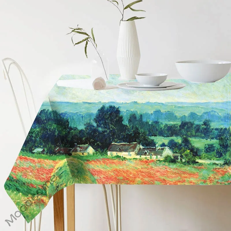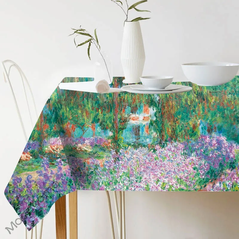 Скатерть для обеденного стола, с изображением Клода Моне, импрессионизма, летних лилий, тропических растений, зеленая льняная скатерть