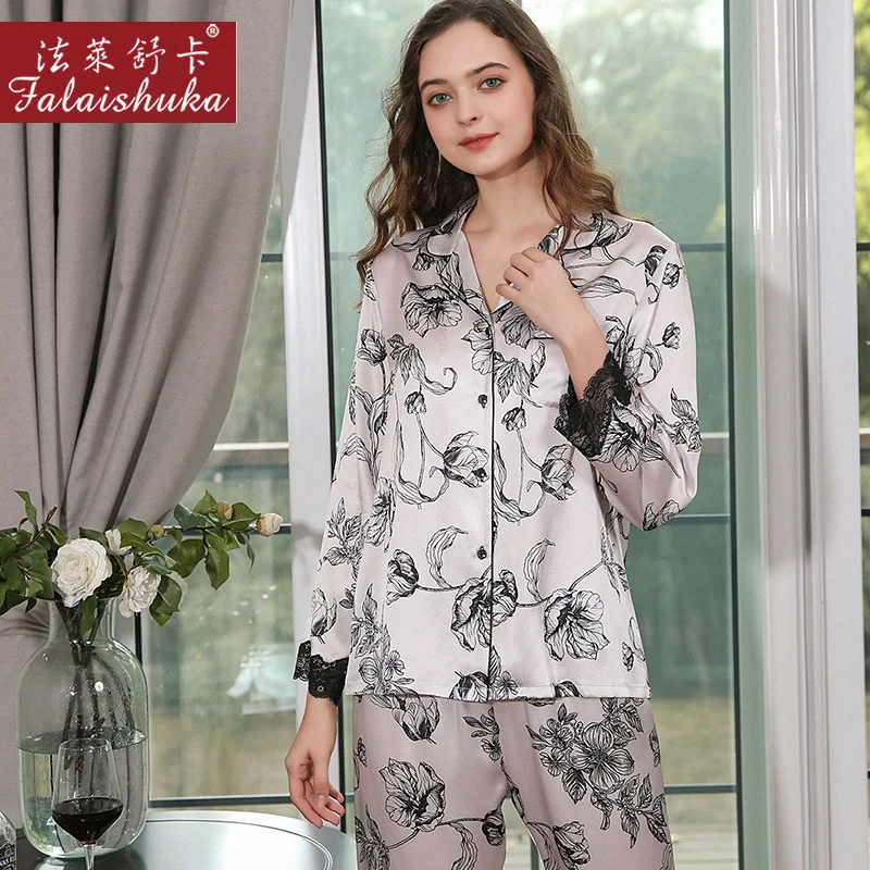 Женская пижама из 100% натурального шелка, с белым лотосом, элегантная, в Корейском стиле, T8260