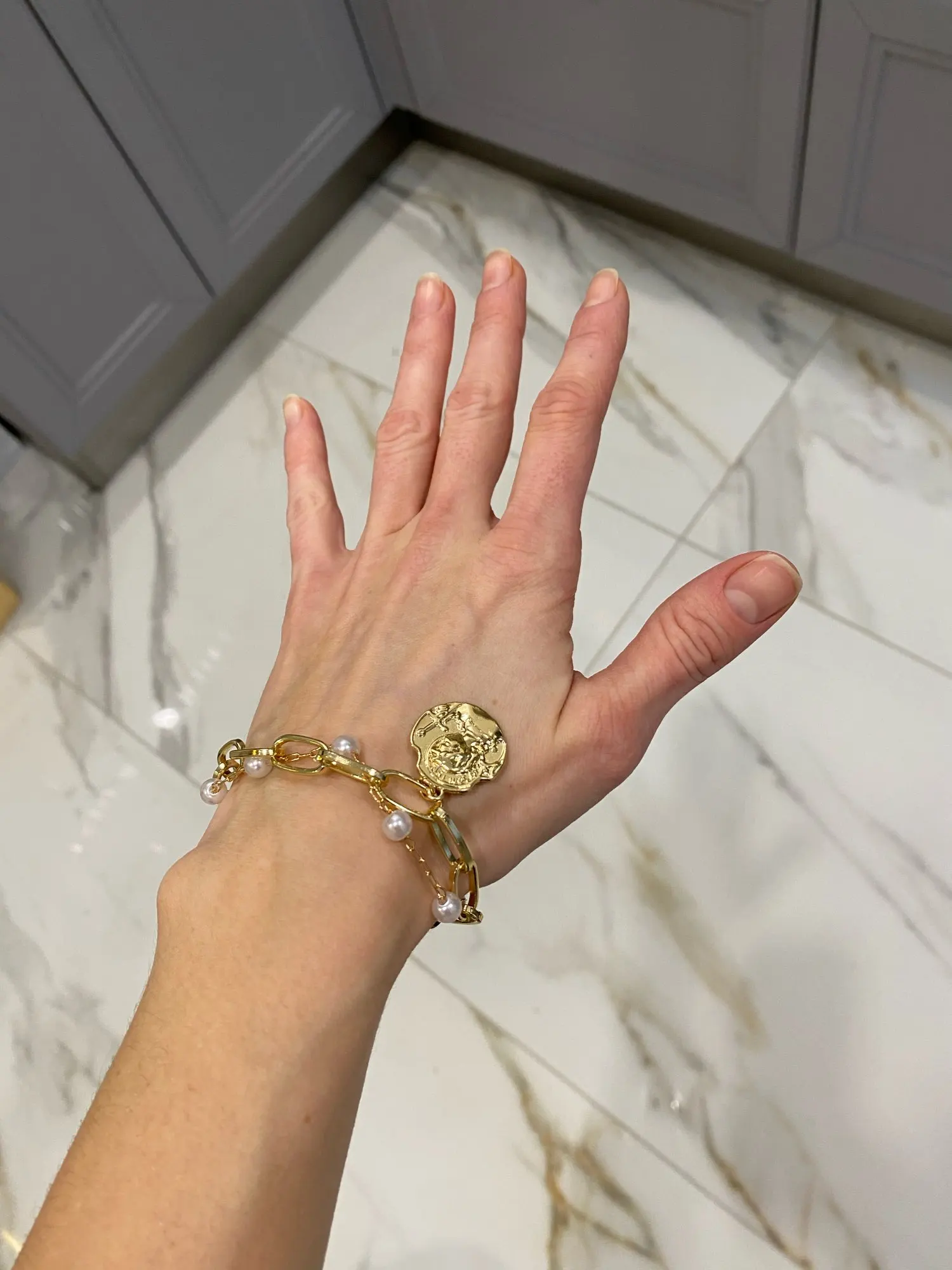 Это действительно красиво вместе, однако монета выглядит немного большой. Если вы не возражаете. Все еще нравится! Если у вас есть маленькие запястья, вы можете не выглядеть так лестно
