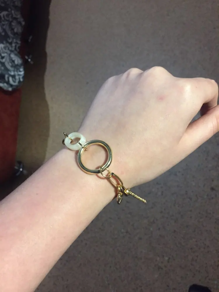 Получила браслет на почте и принесла домой. Медальон прикреплён криво, не по центру. Застежка- карабин сломалась сразу же, при попытке её открыть. Фигня - качество. Придётся переделывать- покупать карабин, переставлять и застежку и медальон