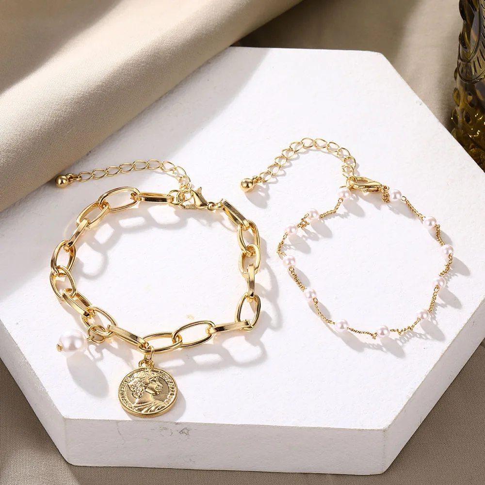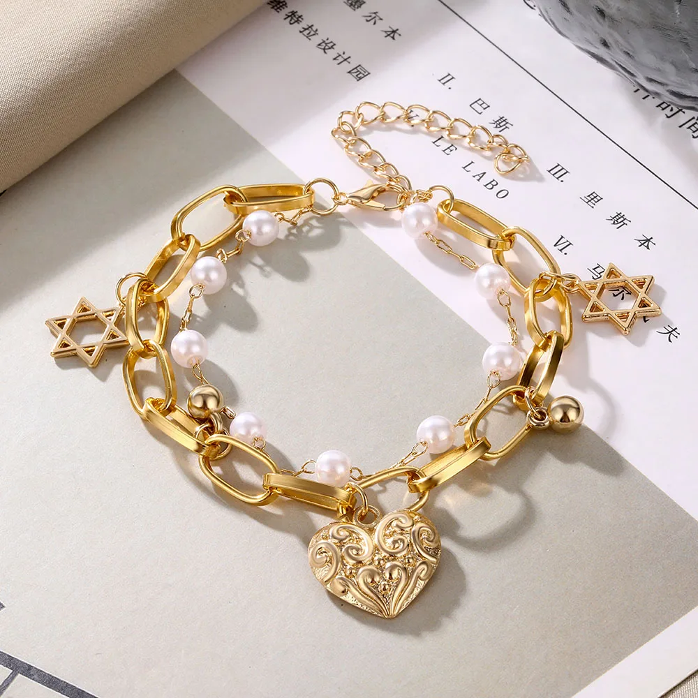 IPARAM, модный браслет из сплава с жемчугом, толстый браслет-цепочка для женщин, очаровательный браслет с искусственным жемчугом и сердцем, ювелирные изделия для вечеринок