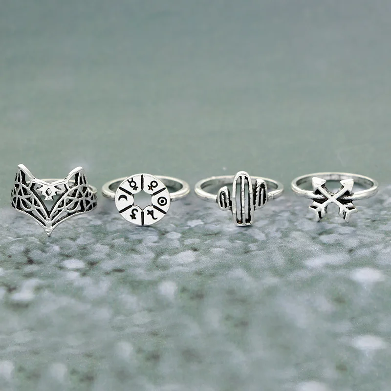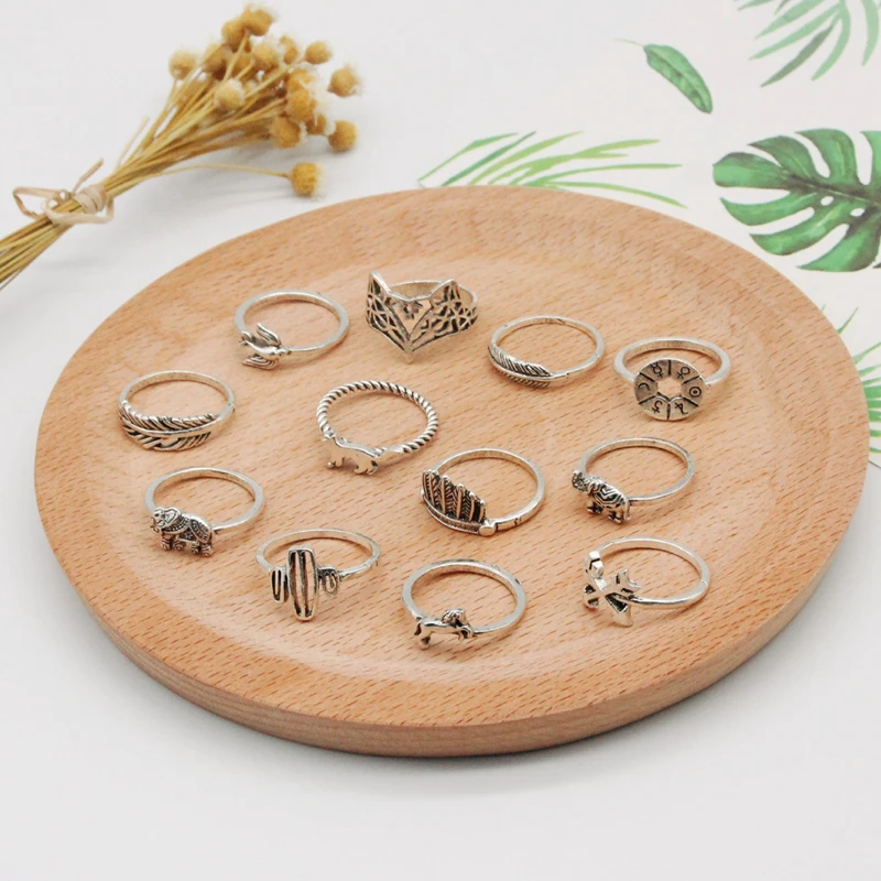12 шт.компл. на фаланги, бохо наборы колец для женщин винтажные кольца-миди в виде слона льва стрелы кактуса с рисунком животных Ювелирные изделия