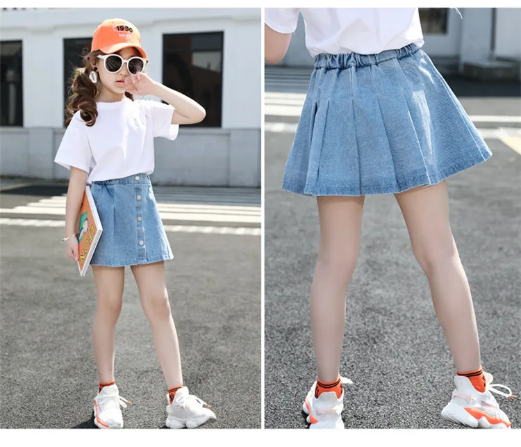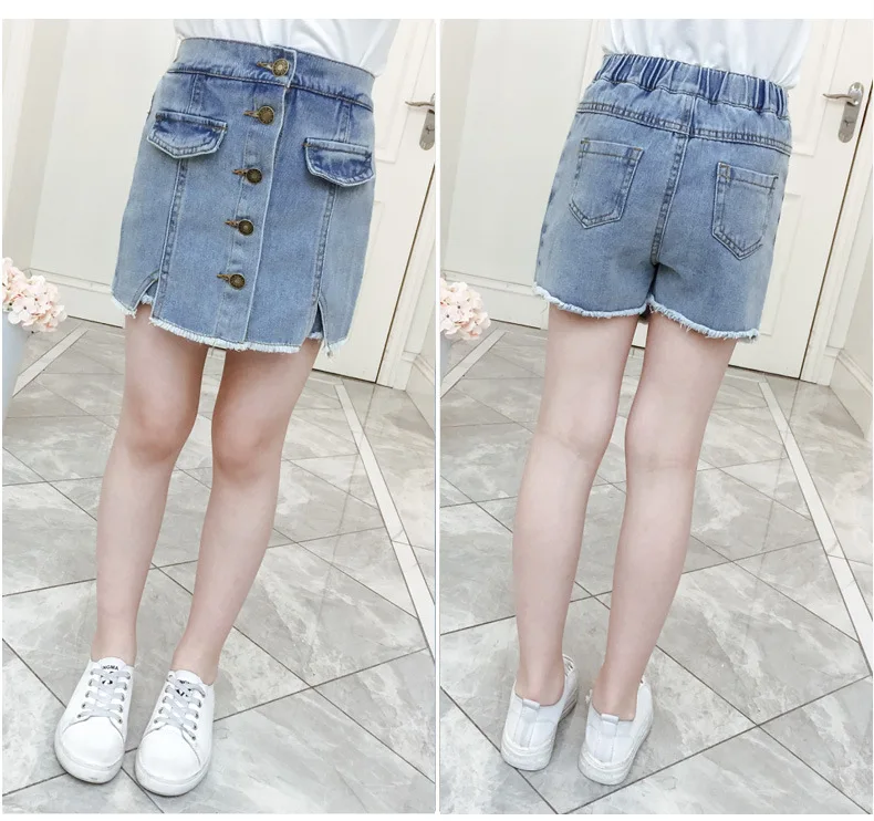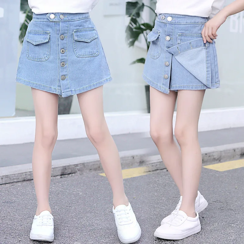 Детские шорты для девочек, юбка-шорты, детская джинсовая короткая юбка, модная летняя повседневная короткая юбка-трапеция для подростков на 10, 12 лет, 2020