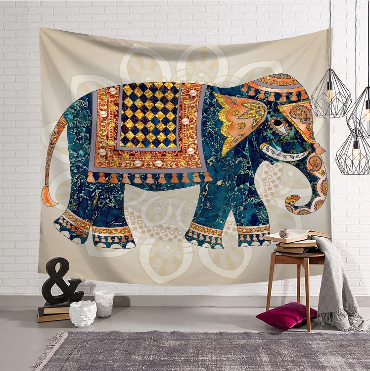 Настенный Коврик с принтом индийского слона, декоративный коврик для йоги для дома, спальни, мандала, полиэстер, квадратный гобелен, ковры в стиле бохо