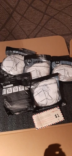 Быстрая доставка, прибыл всего за 1 неделю. Они поставляются в упаковках по 10 штук, и я открыл одну, и они выглядят хорошо. Они удобны и хорошо сидят. У них есть печать стандарта CE на каждой маске. Когда мне придется покупать больше, я закажу у того же продавца снова.