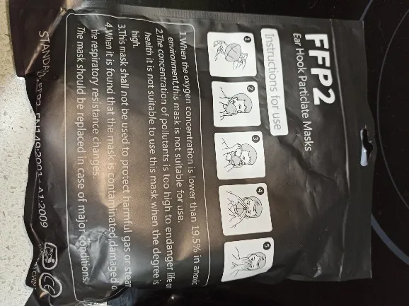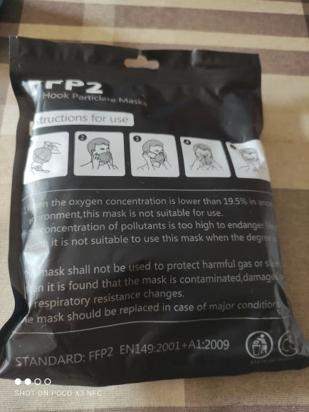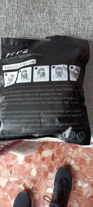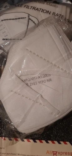 Соответствует описанию 98% фильтра FFP2. Хорошее качество я уже купил у этого продавца больше раз, и на этот раз все прибыло отлично, сумки поставляются с лучшей самозакрытием с FFP2, напечатанным не только в сумках, но и в масках с европейским нормам. Они прибыли очень быстро, очень дружелюбный продавец даже отправил скидку на 1 доллар