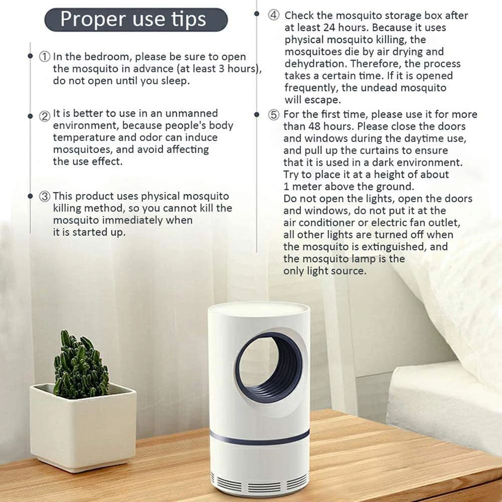 5. В первый раз, пожалуйста, используйте его более 48 часов. Для дневного использования, пожалуйста, закройте двери и окна и закройте окно казначейства, чтобы обеспечить использование в темной среде. Поместите его на 1 метр выше земли. Не включайте светильник/не открывайте двери и окна. Не размещайте его на выходе кондиционера или электрического вентилятора. Пожалуйста, выключите другой светильник, когда убиваете комаров, чтобы убедиться, что убийца комаров-это единственный светильник.