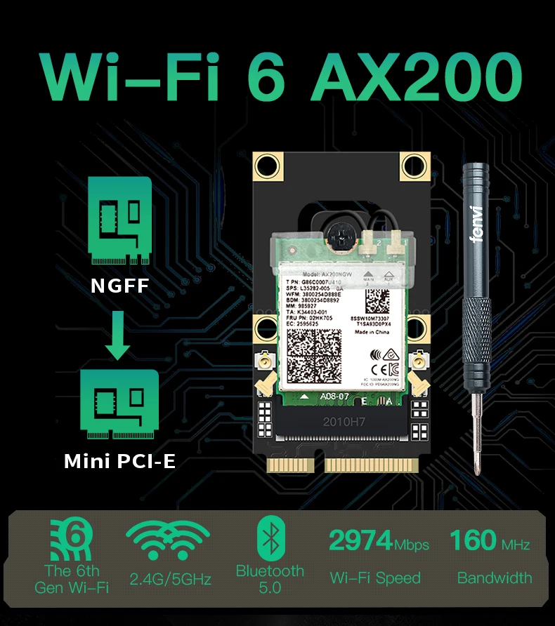 Мини-плата wircard Wi-Fi 6 ax200, pci-e 2400 Мбитс, 802, 11axac BT 5,1, 2,4g5 ГГц, адаптер для windows 10