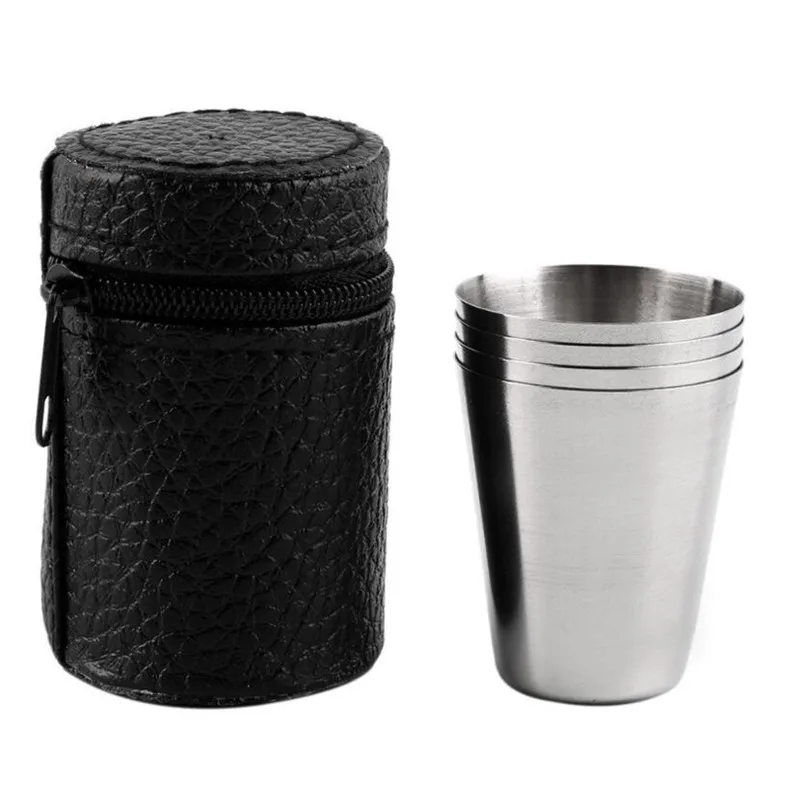 Рюмки из нержавеющей стали, 4 шт.компл., с кожаным чехлом, с сумкой...