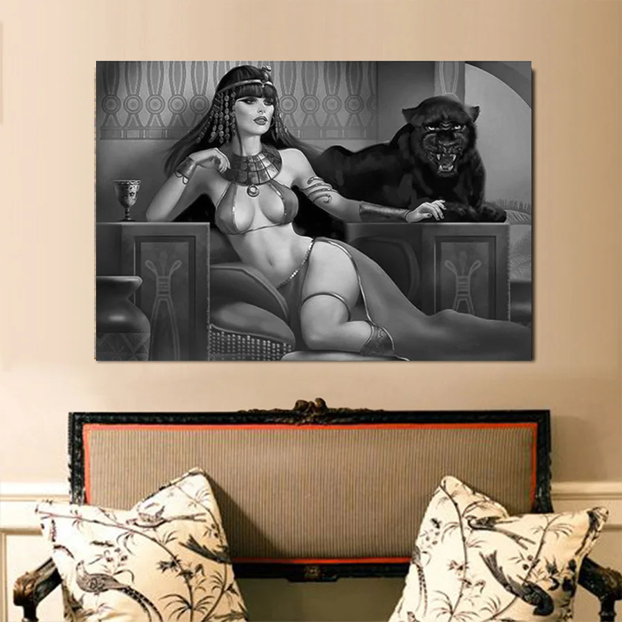 5D алмазная живопись, египетская королева, алмазная вышивка стразы, Алмазная мозаика Клеопатра, черный леопард, Набор для вышивки крестиком, украшение