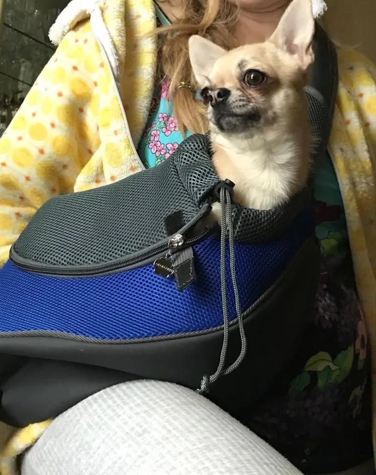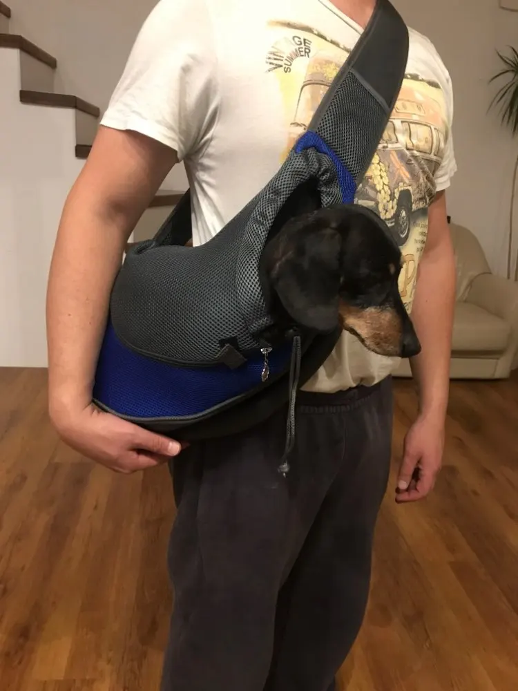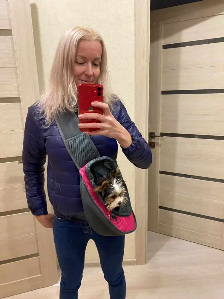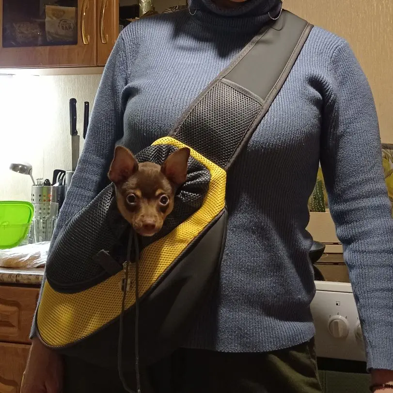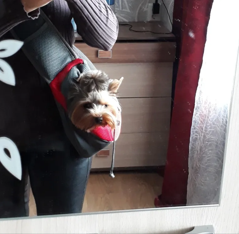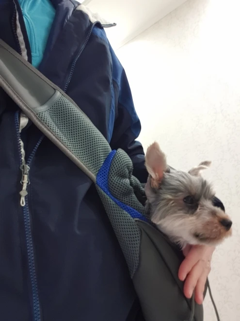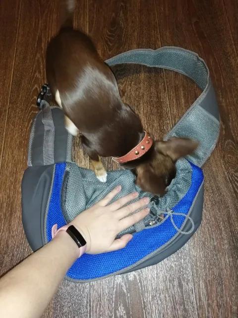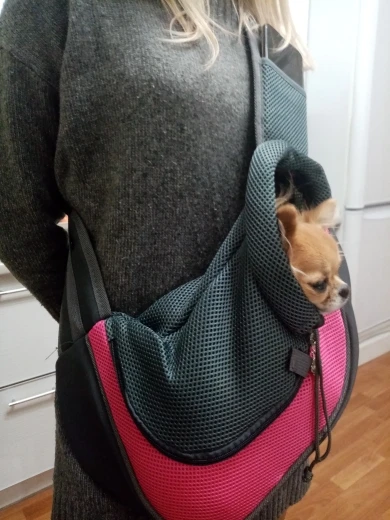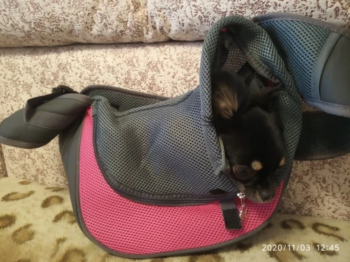 Очень удачный вариант для свободных рук. Собака чувствует себя комфортно, несмотря на то что я подстраховалась и взяла L размер. Вес собаки 2 кг, мини мини. Что не мало важно с внутренней стороны тоже дышащая сетка. Спасибо